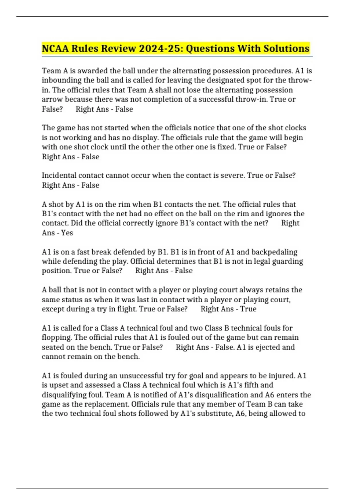 ,take A1's foul shots. True or False? Right Ans - True. Substitute can shoot