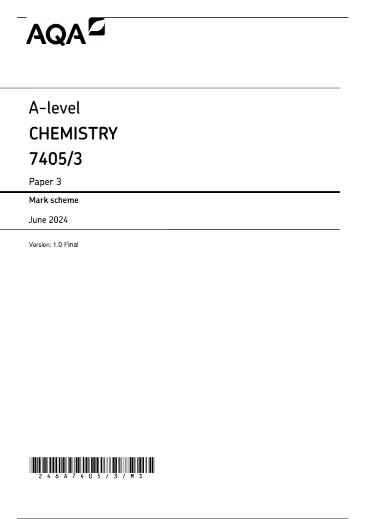 , MARK SCHEME – A-LEVEL CHEMISTRY – 7405/3 – JUNE 2024