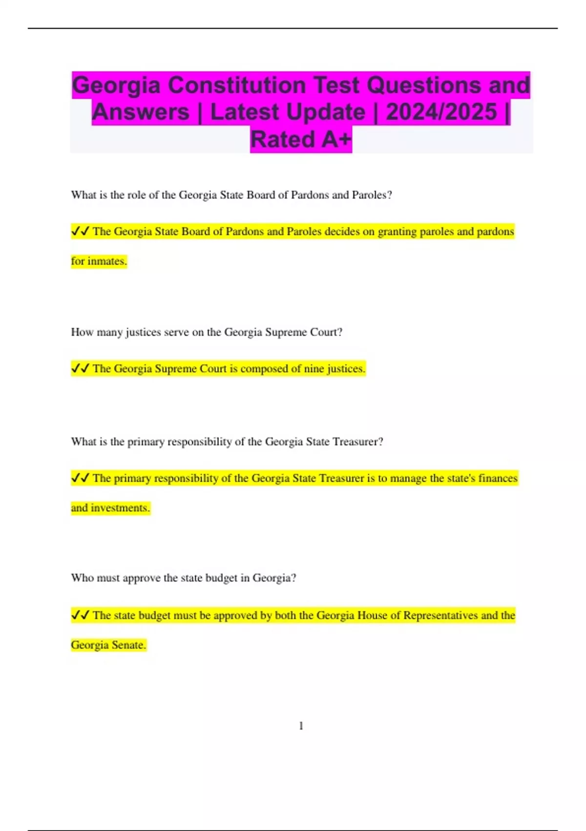 ✔✔ The primary responsibility of the Georgia State Treasurer is to manage the state's finances