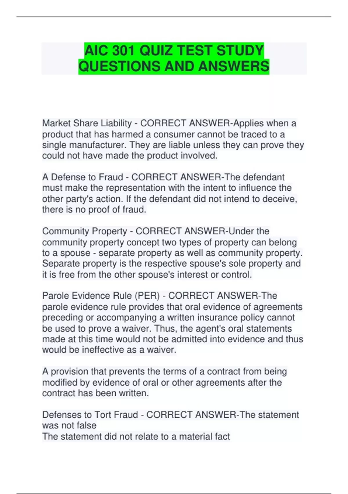 Parole Evidence Rule (PER) - CORRECT ANSWER-The