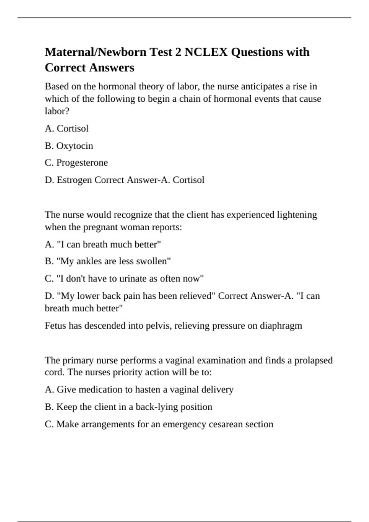 , D. There is now observable crowning Correct Answer-B. The presenting