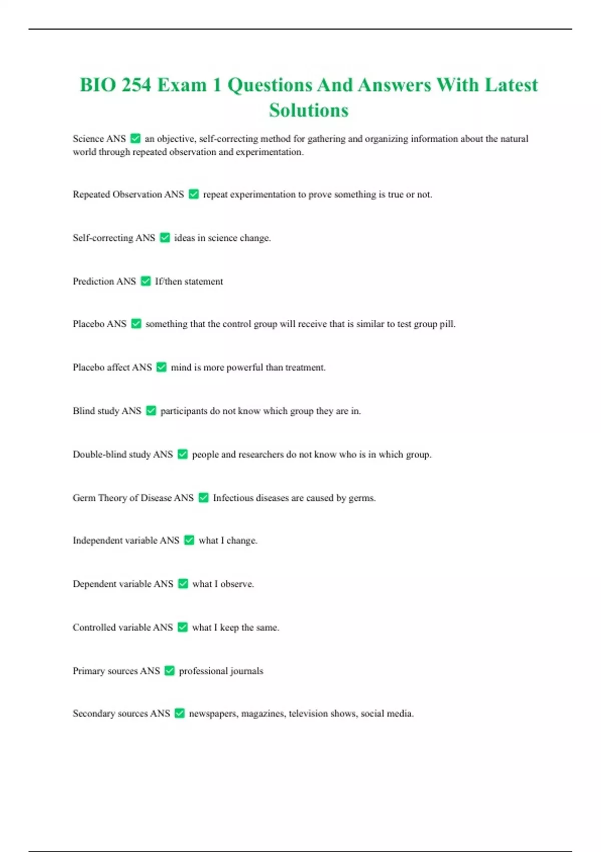 BIO 254 Exam 1 Questions And Answers With Latest