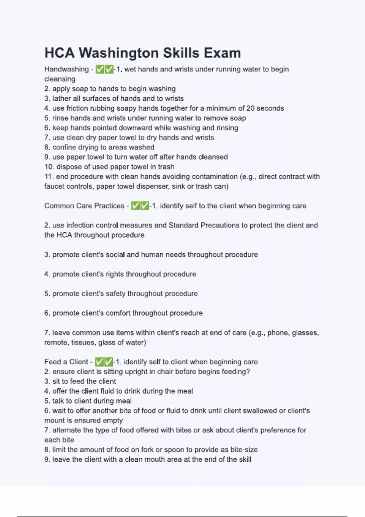 HCA Washington Skills Exam with verified correct answers - complete solution 2024.