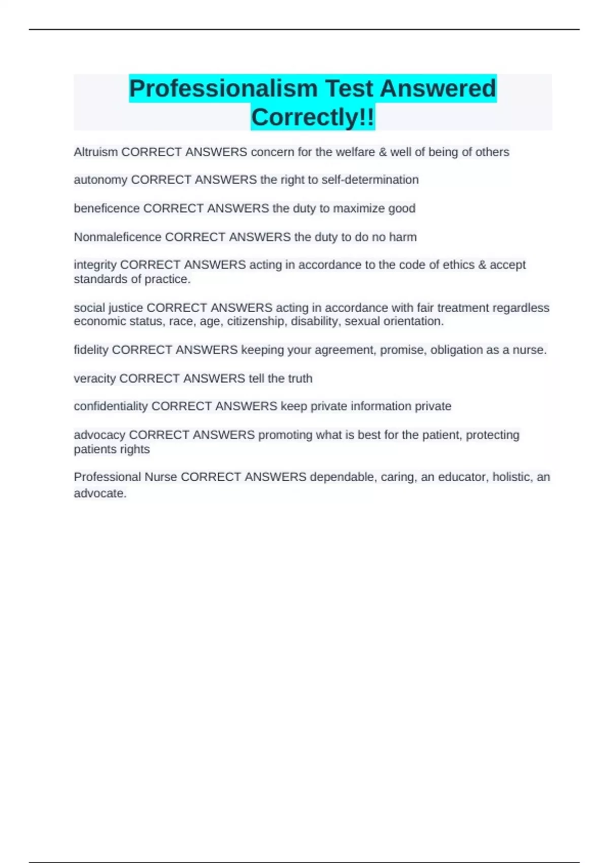 Professional Nurse CORRECT ANSWERS dependable, caring, an educator, holistic, an