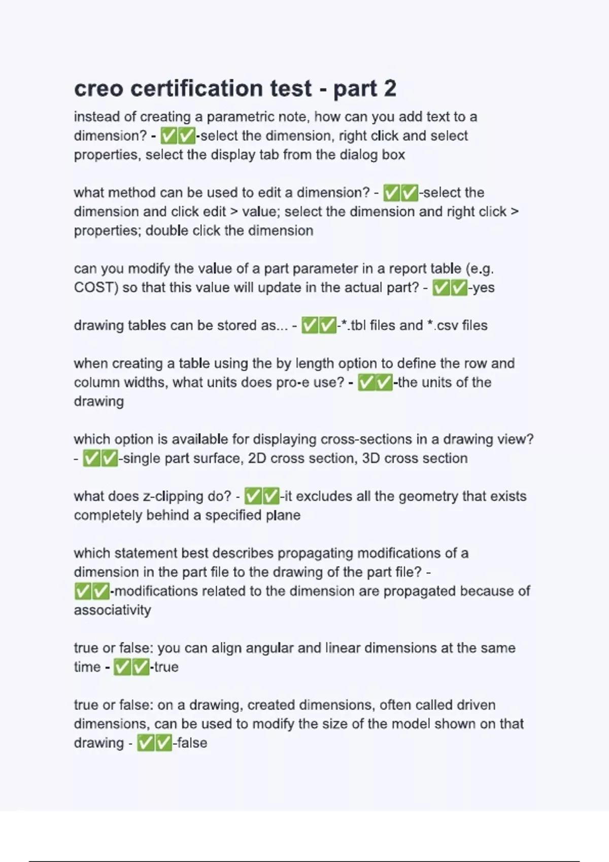 creo certification test - part 2 Questions with verified correct answers.