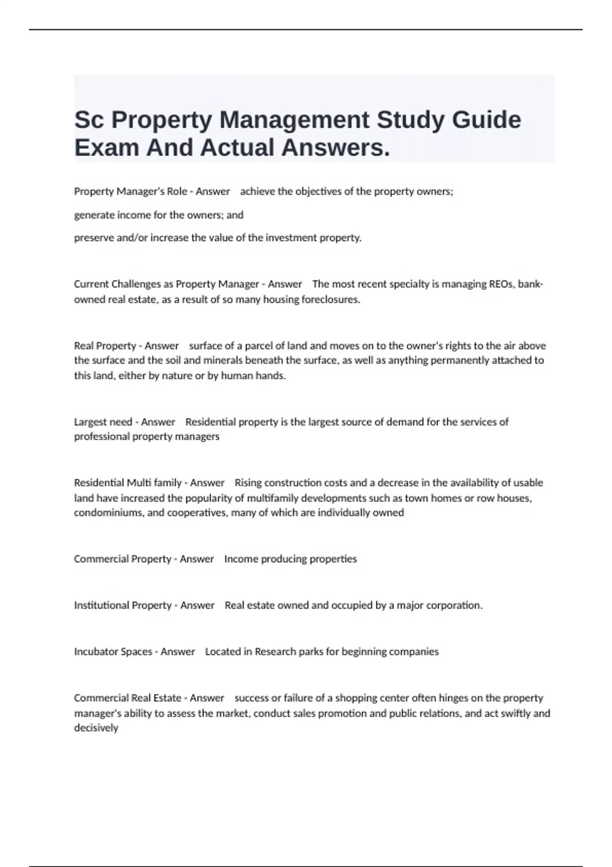 Commercial Property - Answer Income producing properties
