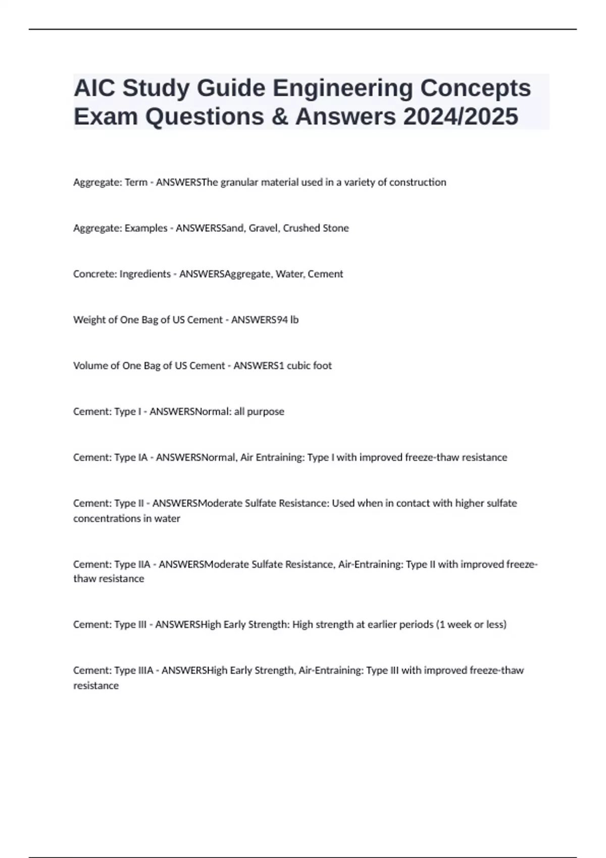 Cement: Type IA - ANSWERSNormal, Air Entraining: Type I with improved freeze-thaw resistance