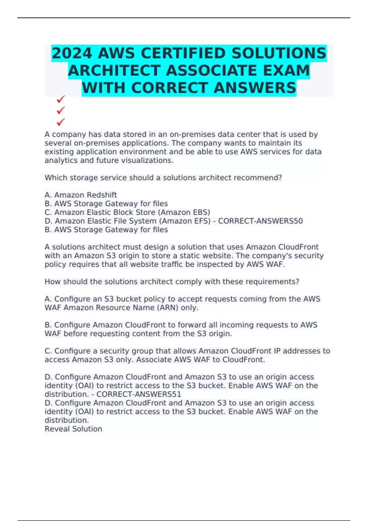 D. Amazon Elastic File System (Amazon EFS) - CORRECT-ANSWERS50