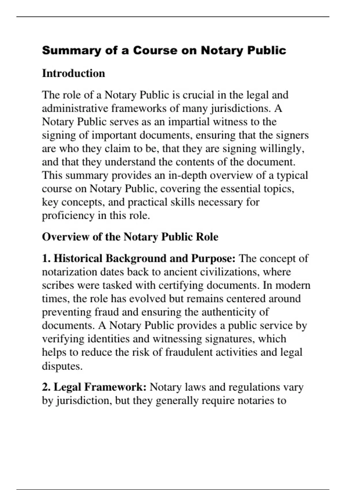 course on Notary Public, covering the essential topics,