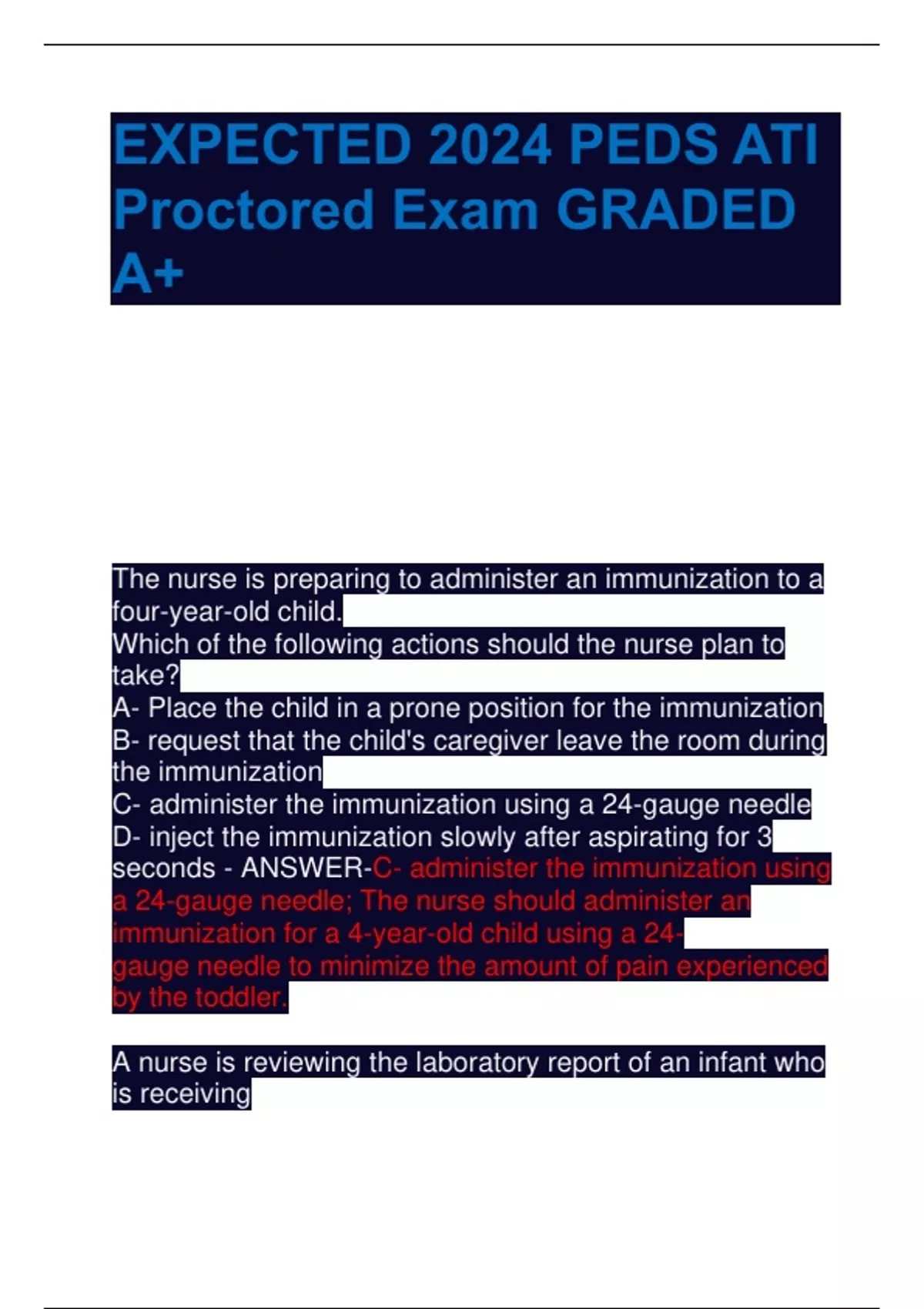 A- Place the child in a prone position for the immunization