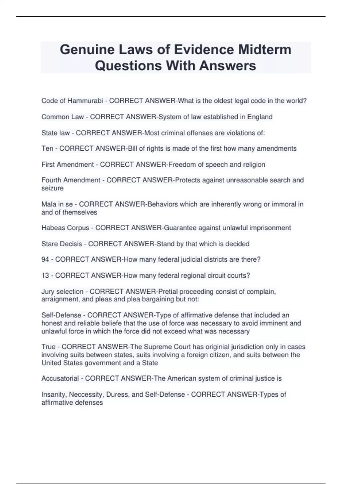 Code of Hammurabi - CORRECT ANSWER-What is the oldest legal code in the world?
