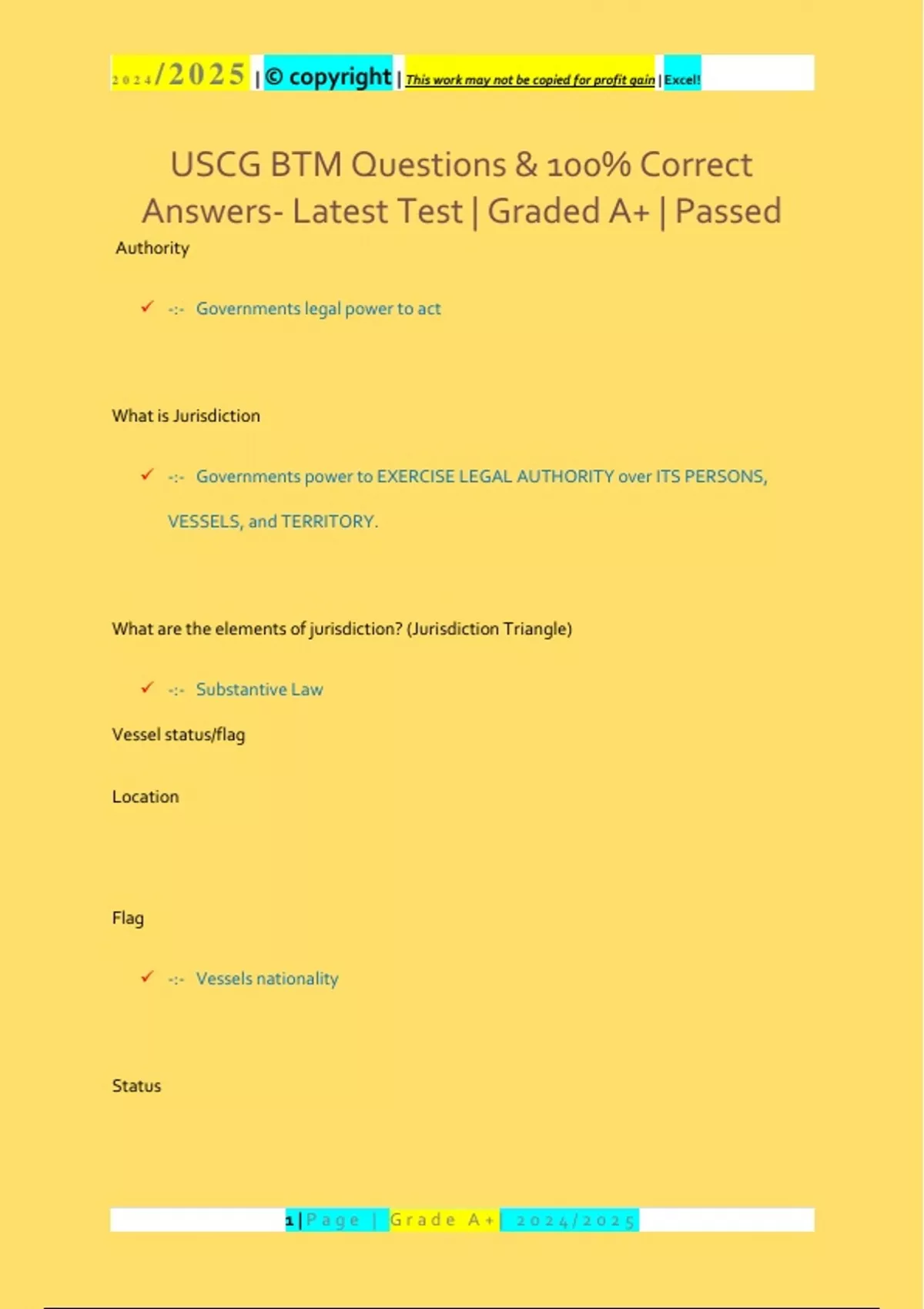 USCG BTM Questions & 100% Correct Answers- Latest Test | Graded A+ | Passed