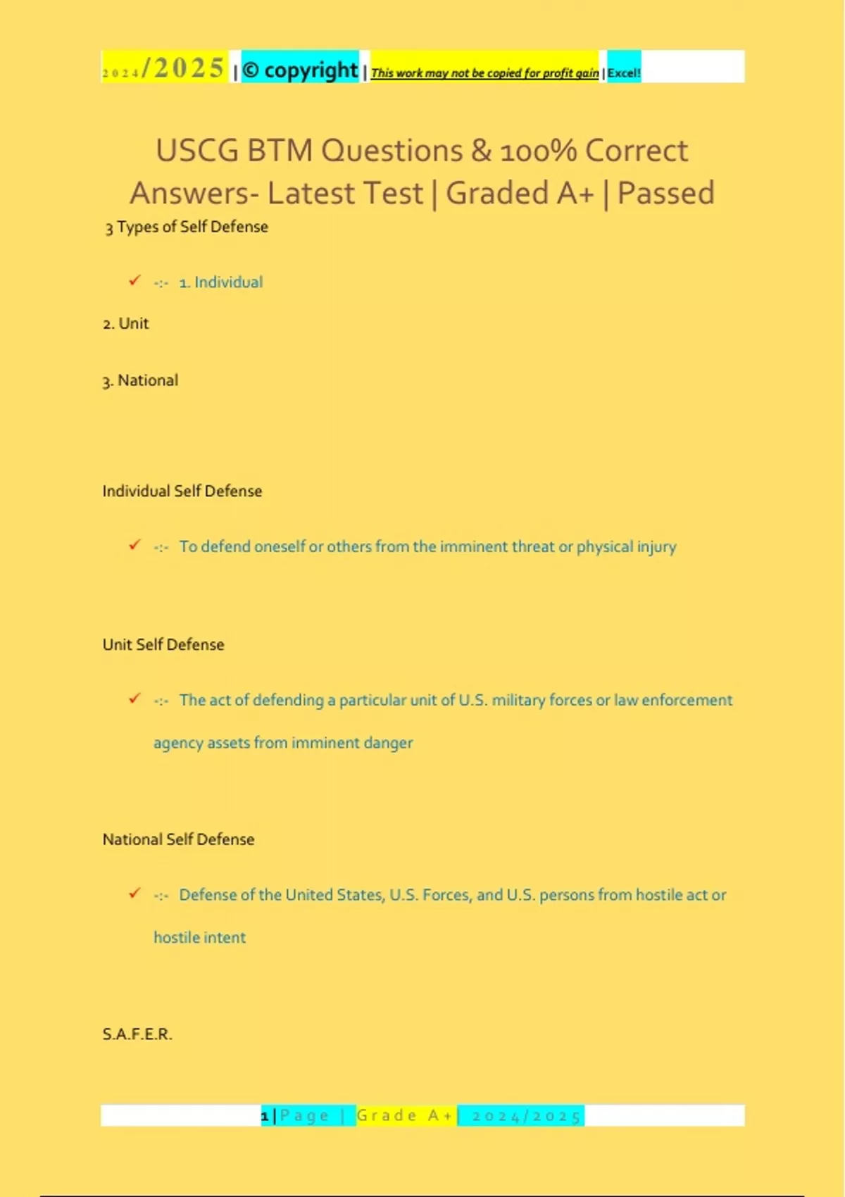 USCG BTM Questions & 100% Correct Answers- Latest Test | Graded A+ | Passed
