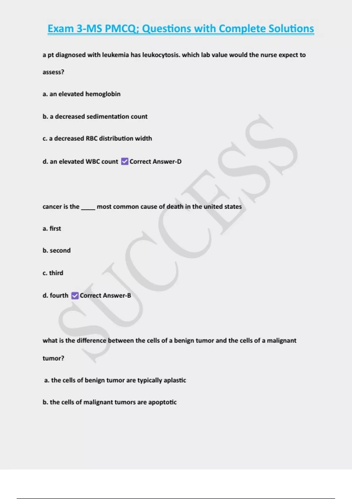 , Exam 3-MS PMCQ; Questions with Complete Solutions
