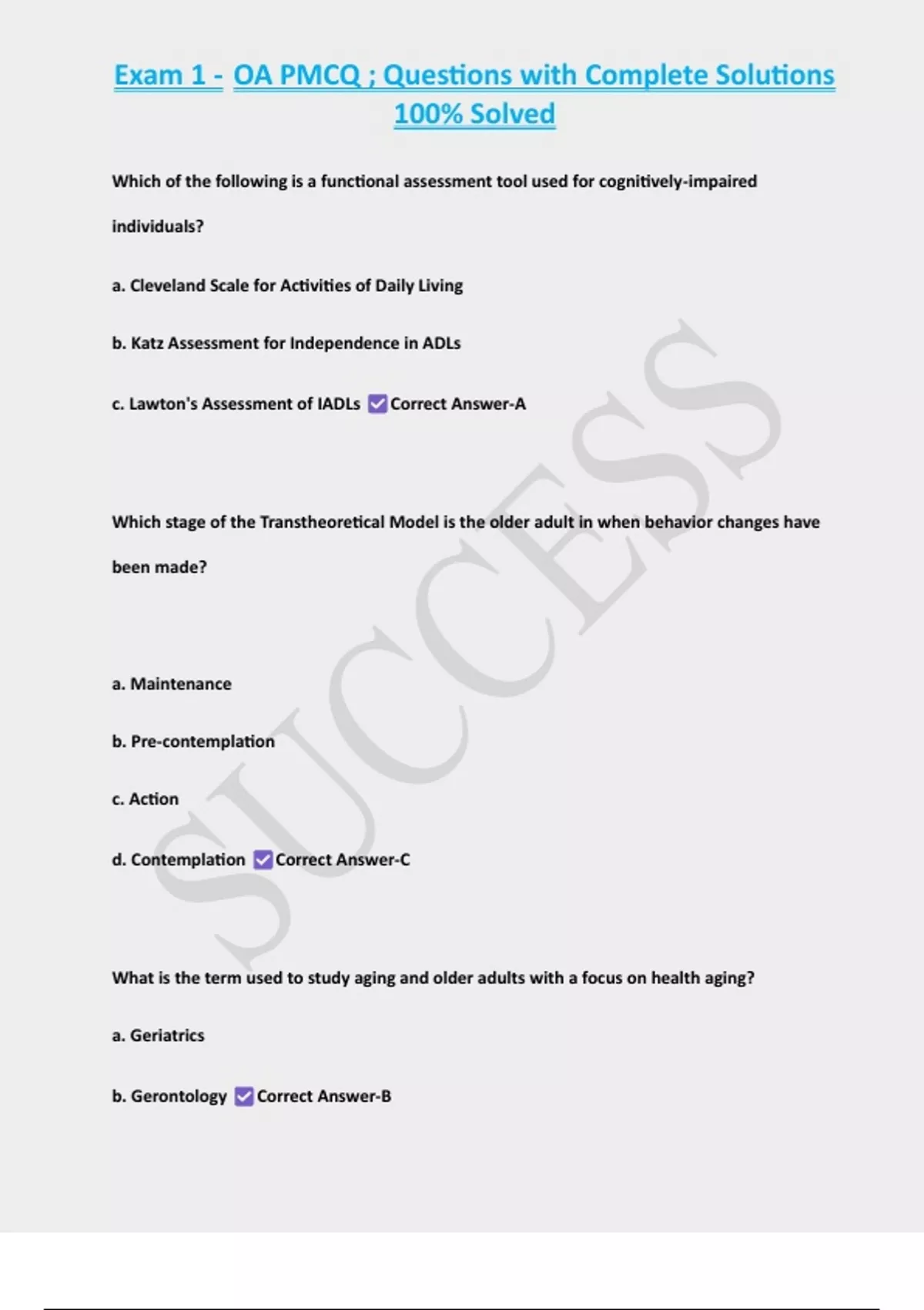 , Exam 1 - OA PMCQ ; Questions with Complete Solutions
