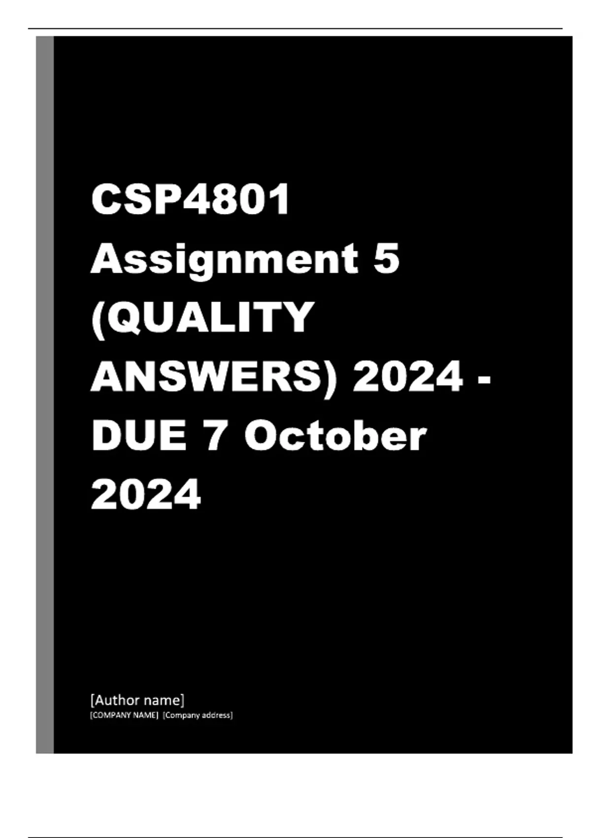 CSP4801 Assignment 5 (COMPLETE ANSWERS) 2024 - DUE 7 October 2024.
