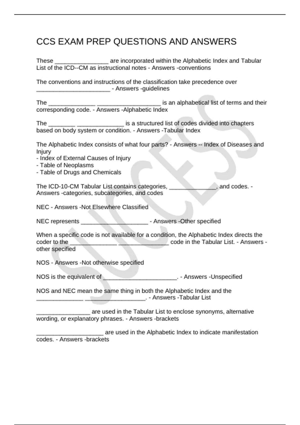 CCS EXAM PREP QUESTIONS AND ANSWERS