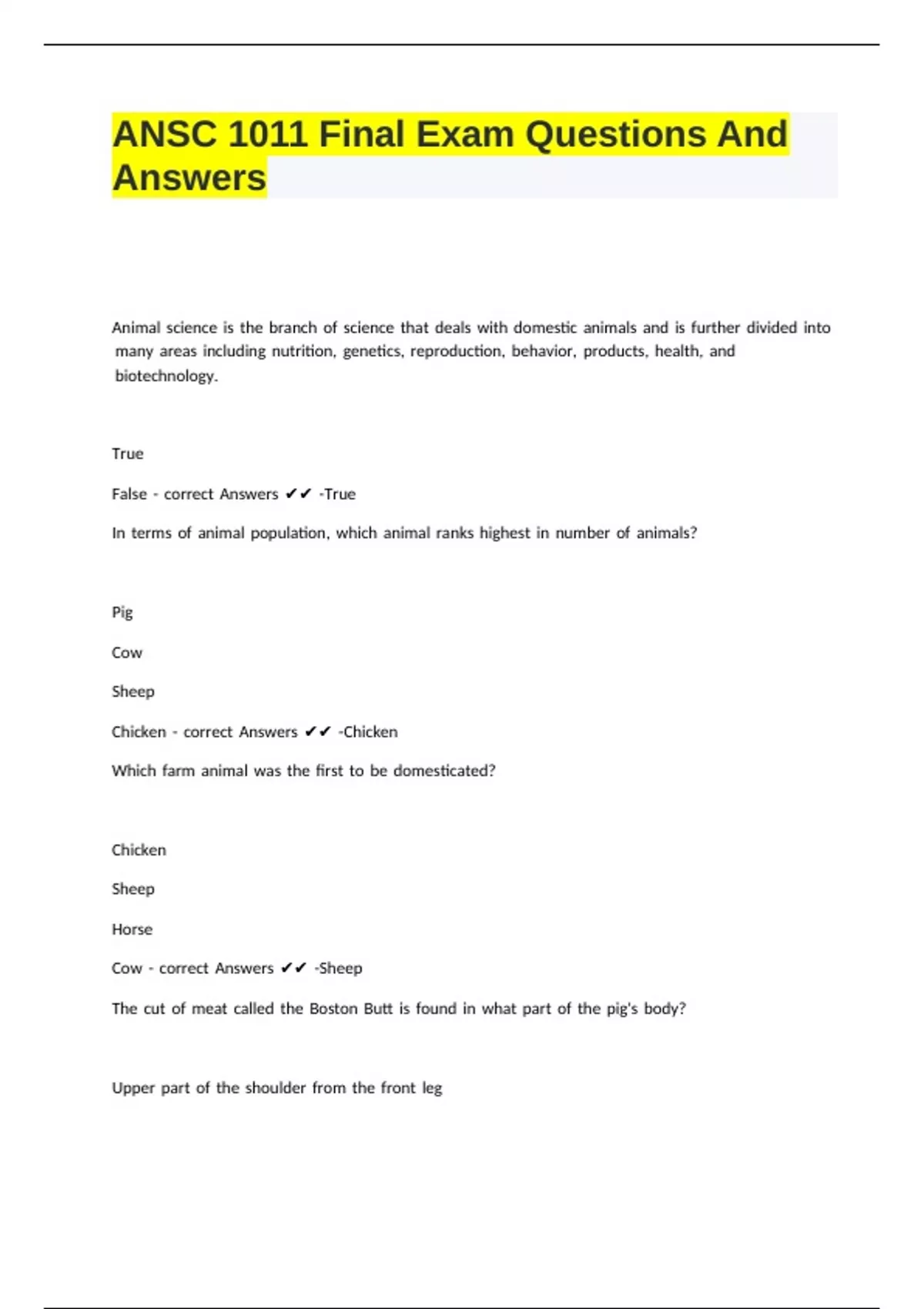 Cow I- Icorrect IAnswers I✔✔ I-Sheep