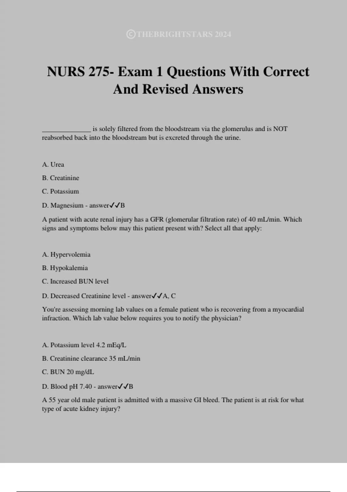 D. Intrinsic renal - answer✔✔C