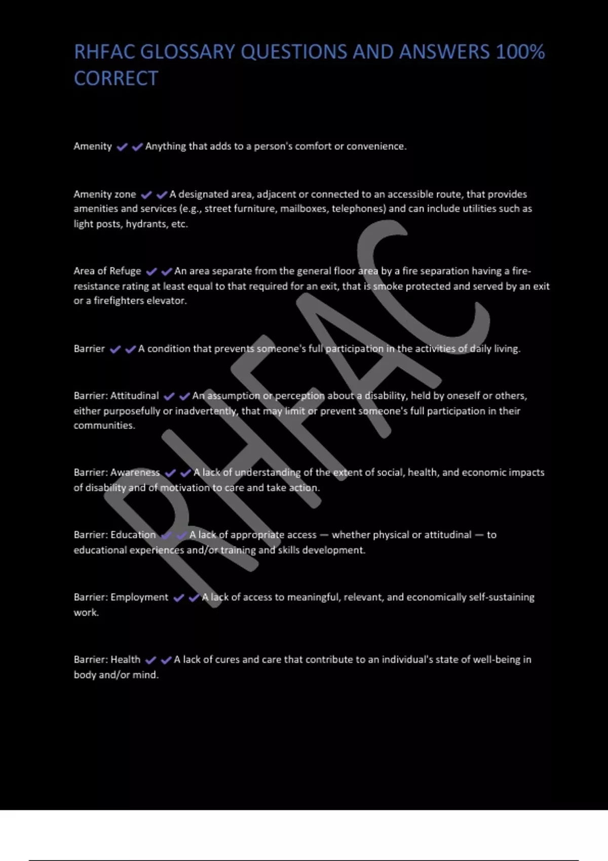 , RHFAC GLOSSARY QUESTIONS AND ANSWERS 100%