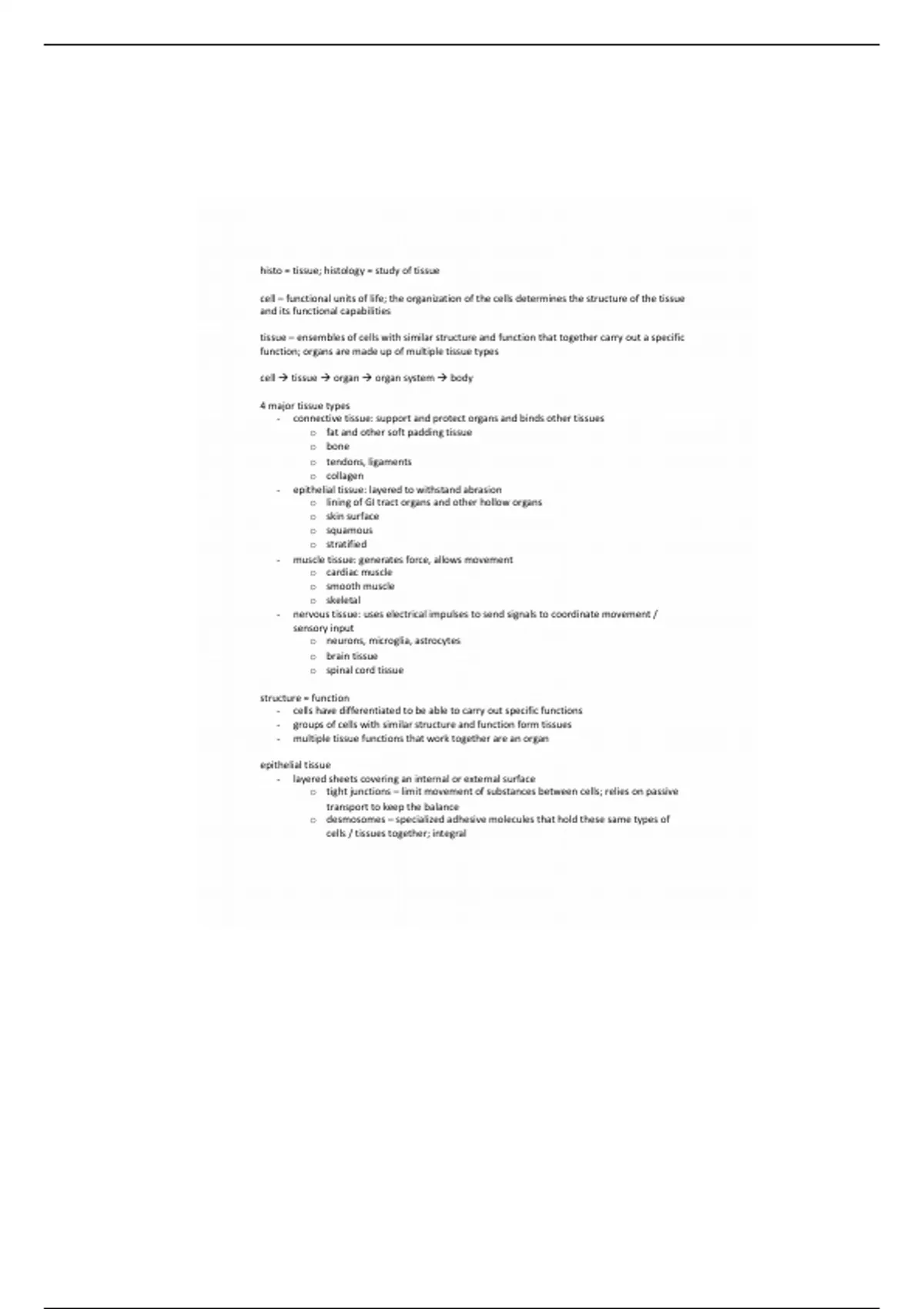 cells / tissues together; integral