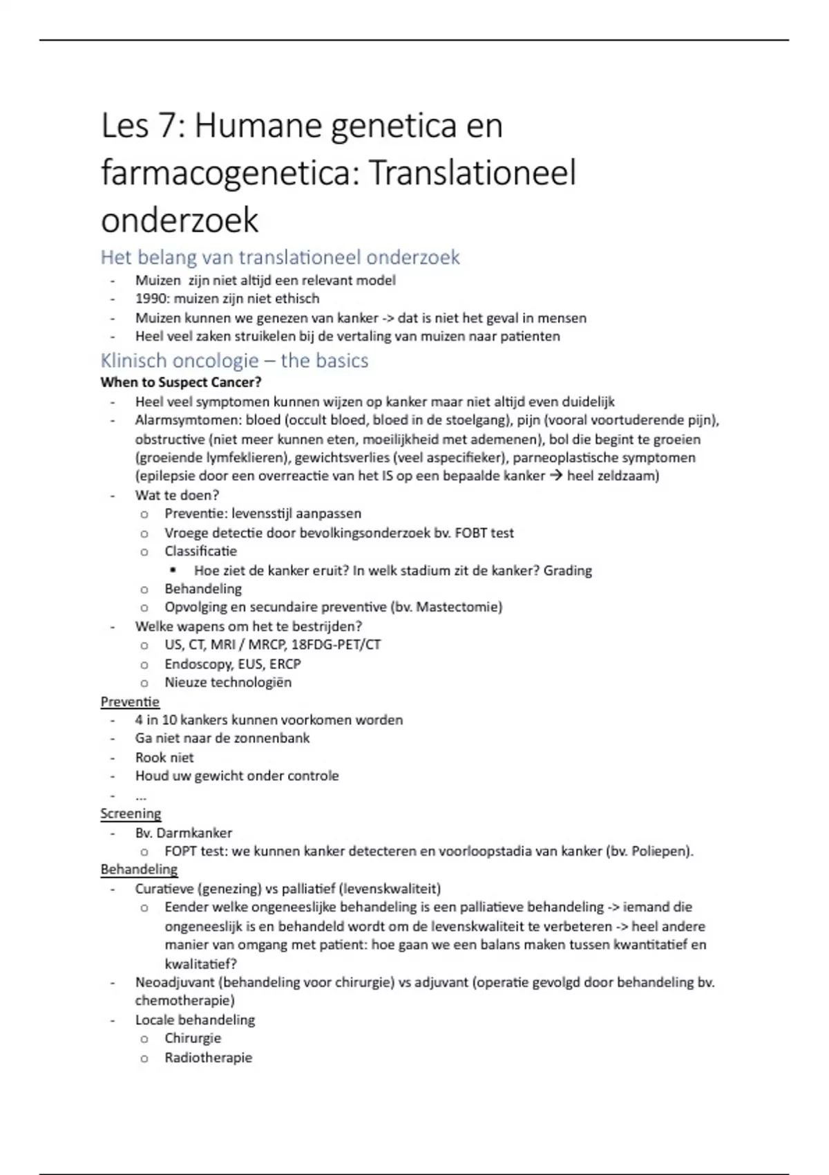 o Opvolging en secundaire preventive (bv. Mastectomie)