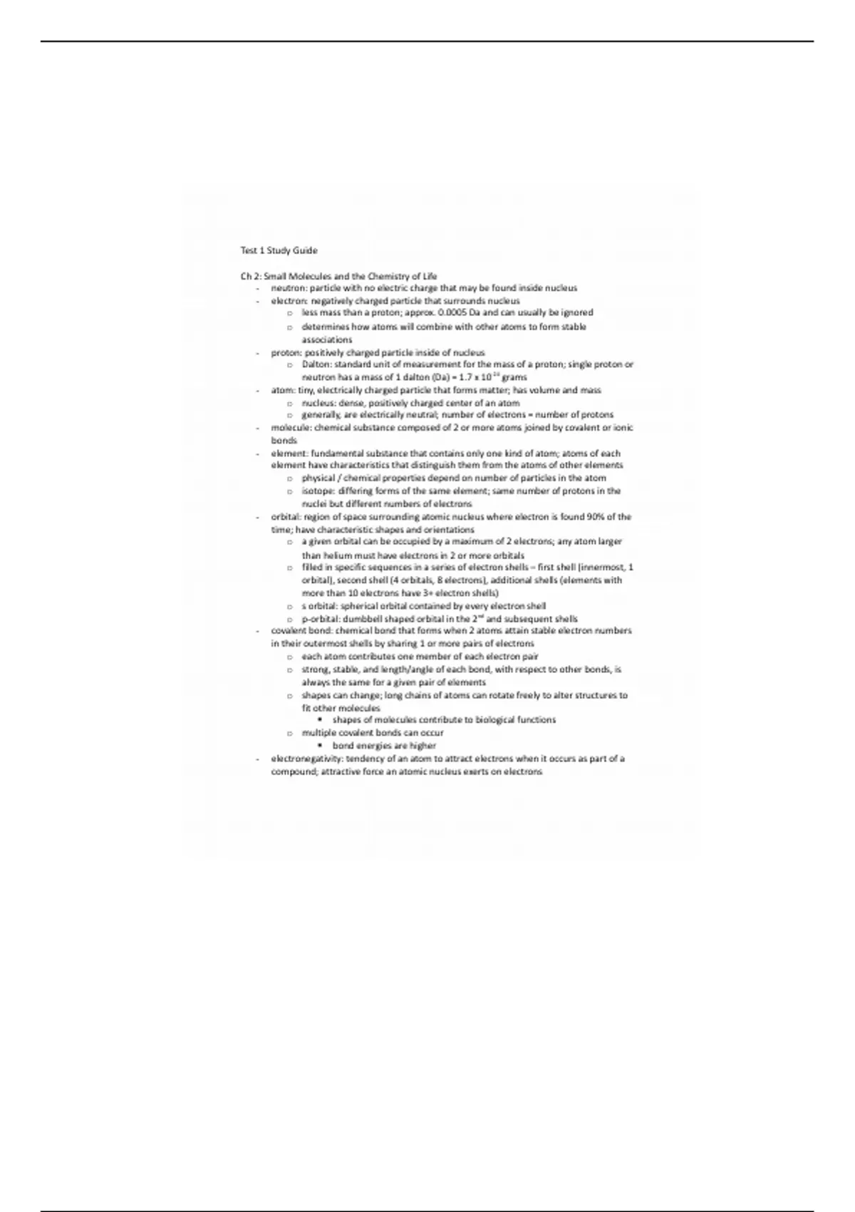 Ch 2: Small Molecules and the Chemistry of Life