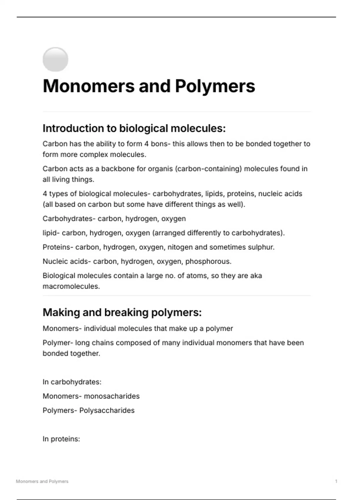 Monomers and Polymers 1