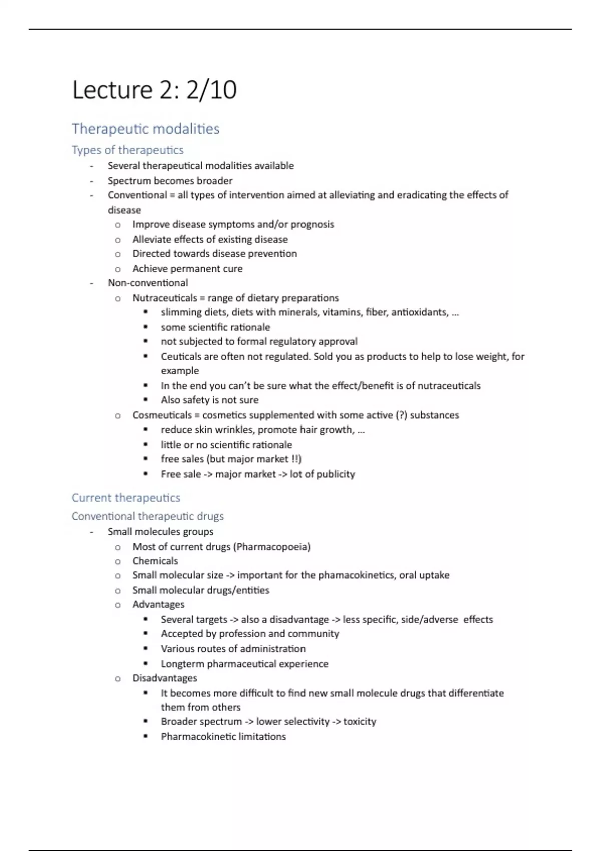 Samenvatting Les 2 'Drug discovery process, therapeutic modalities'