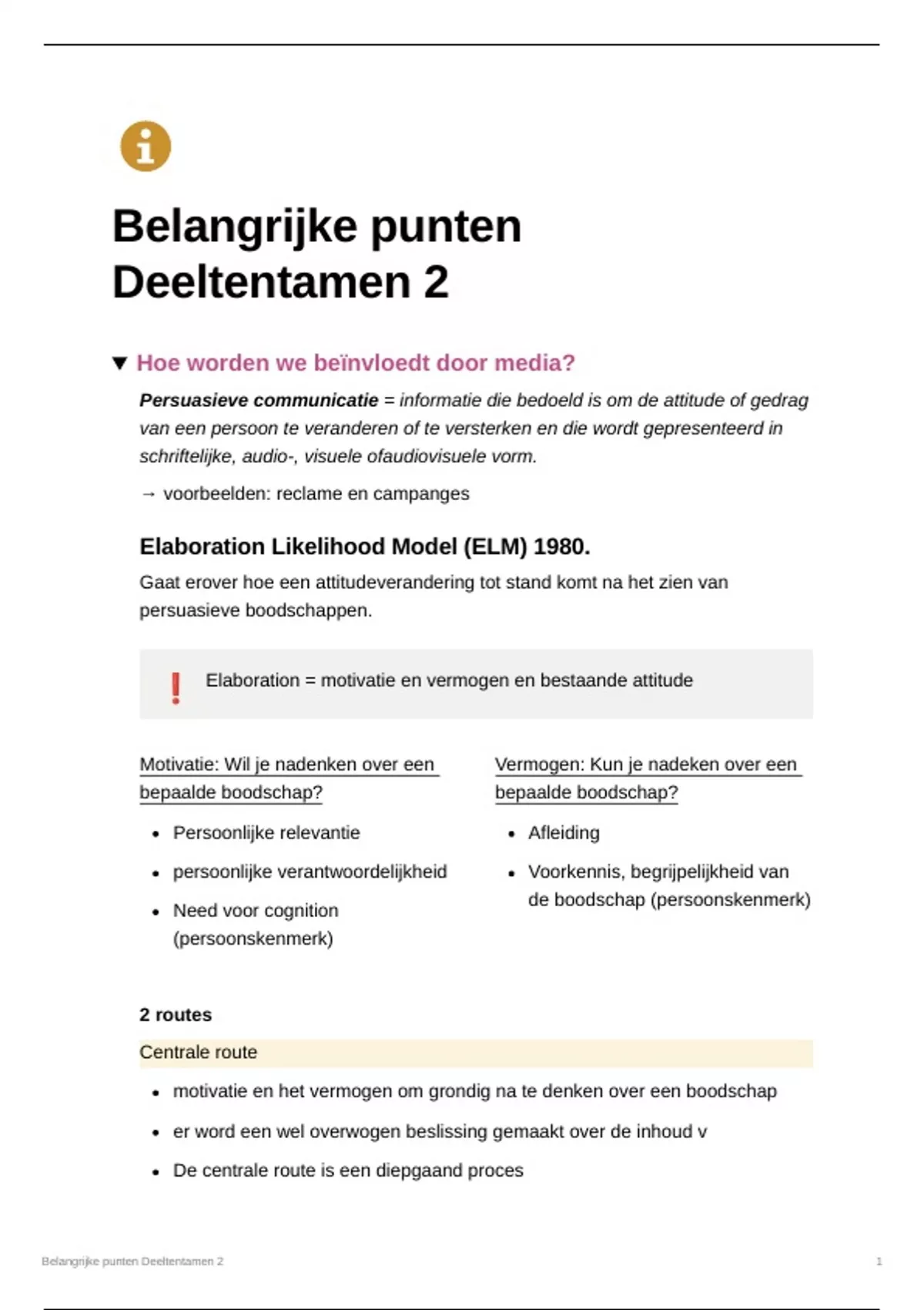 ❗ Elaboration = motivatie en vermogen en bestaande attitude