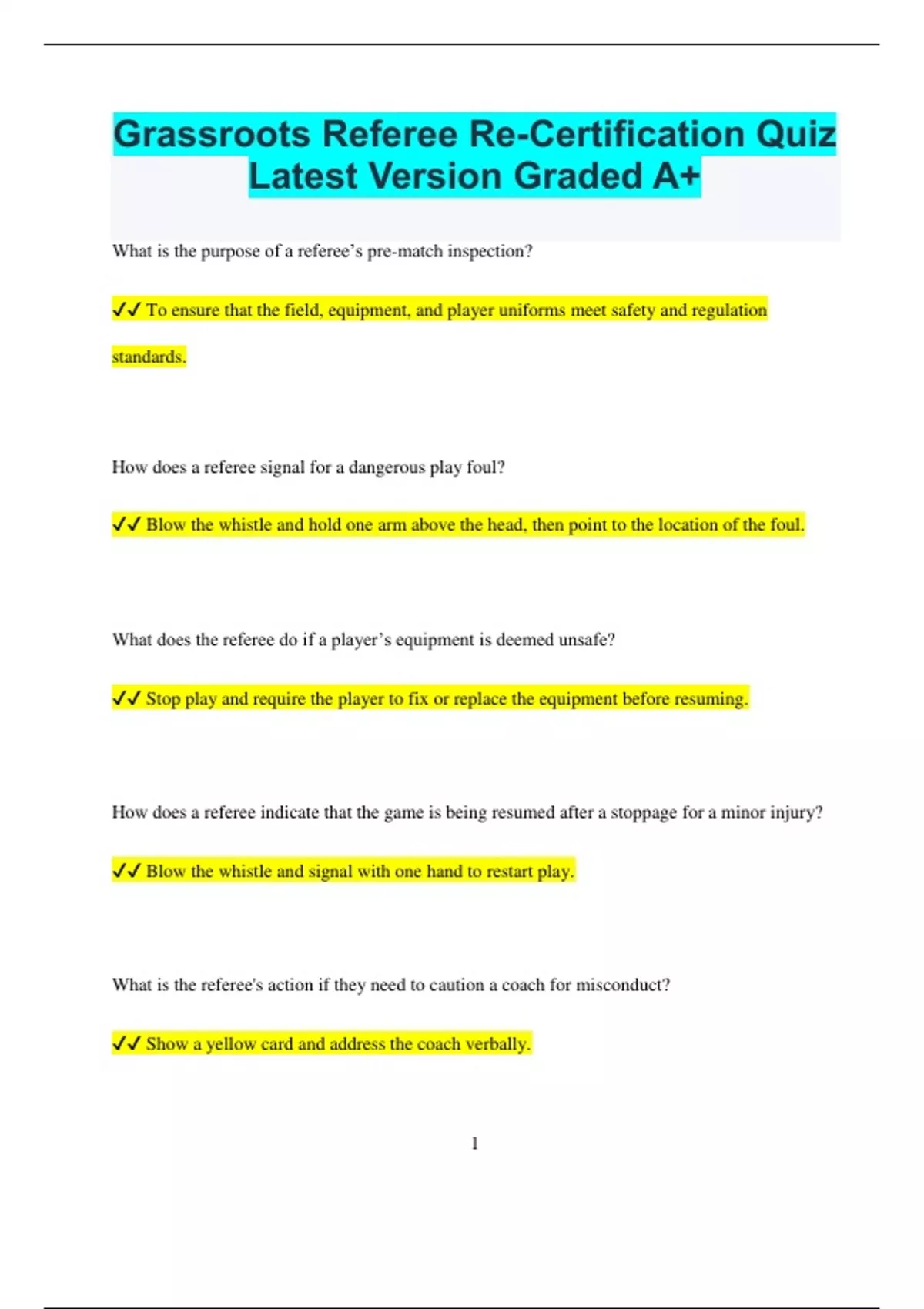 Grassroots Referee Re-Certification Quiz Latest Version Graded A+