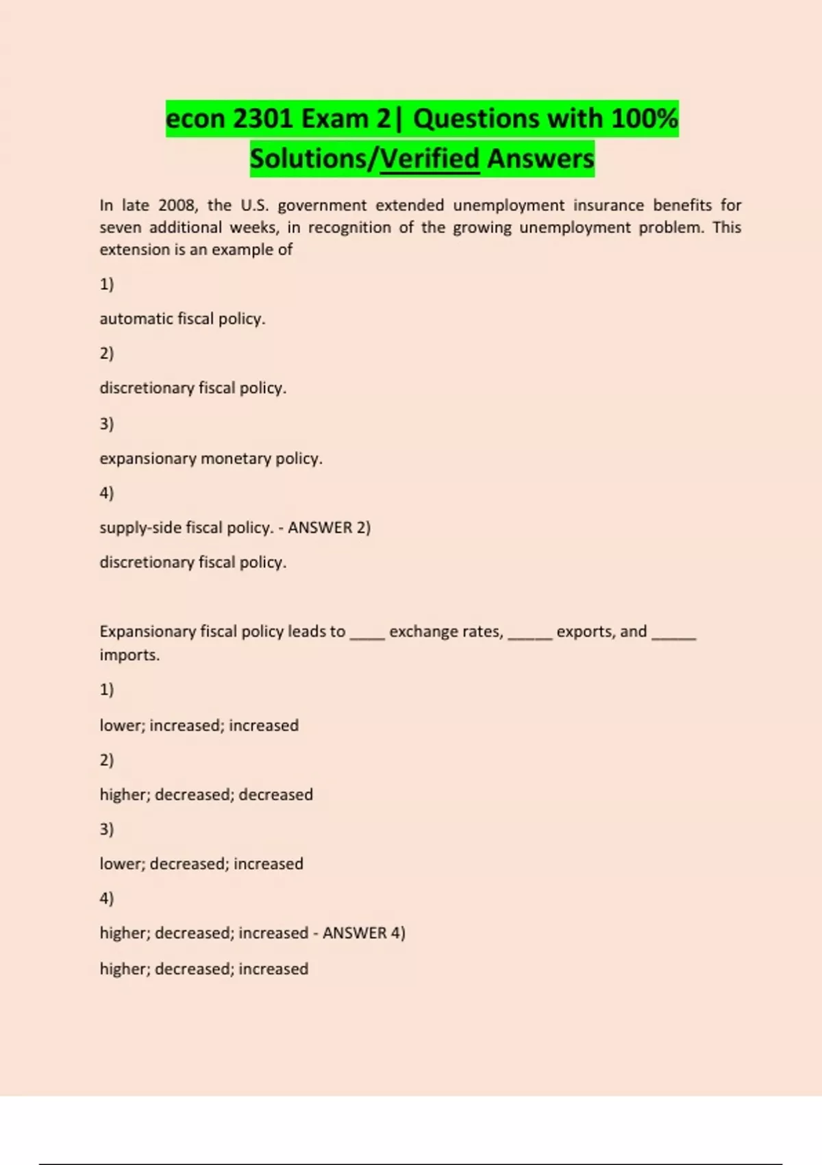 econ 2301 Exam 2| Questions with 100%