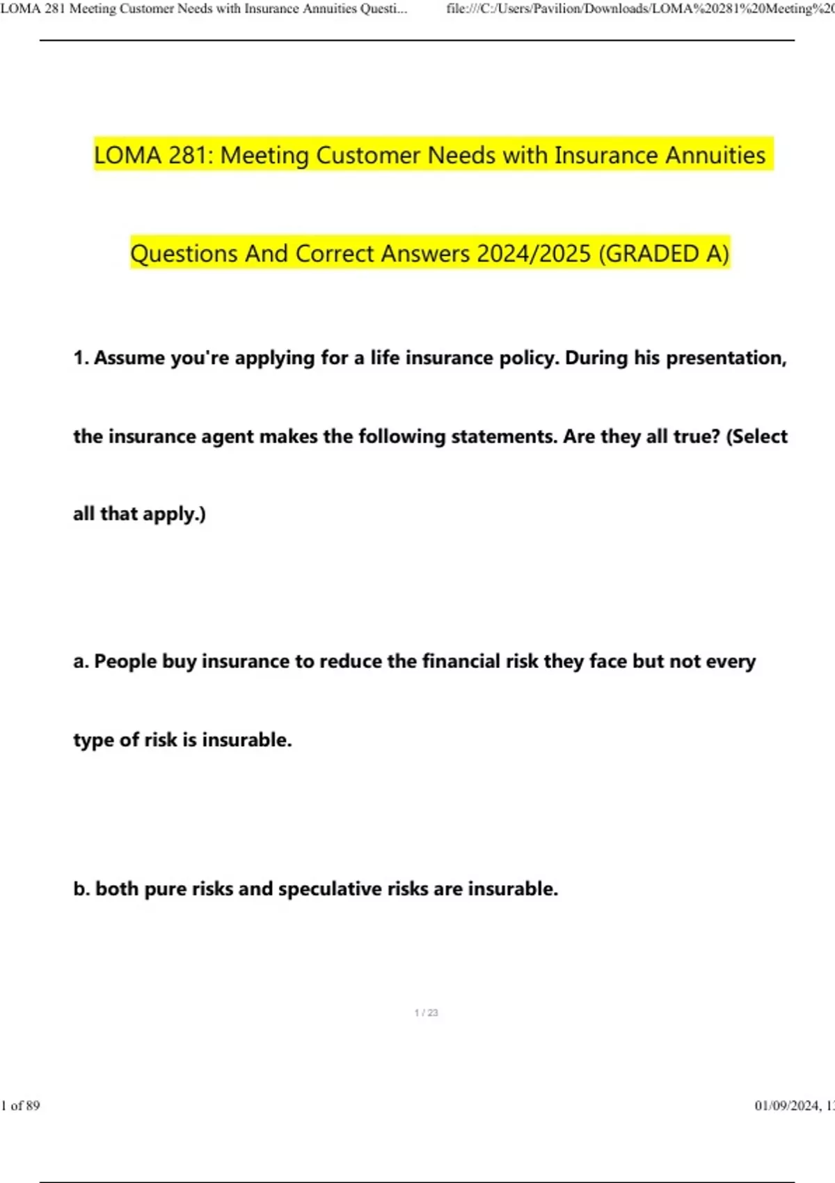 ,LOMA 281 Meeting Customer Needs with Insurance Annuities Questi... file:///C:/Users/Pavilion/Downloads/LOMA%20281%20Meeting%20