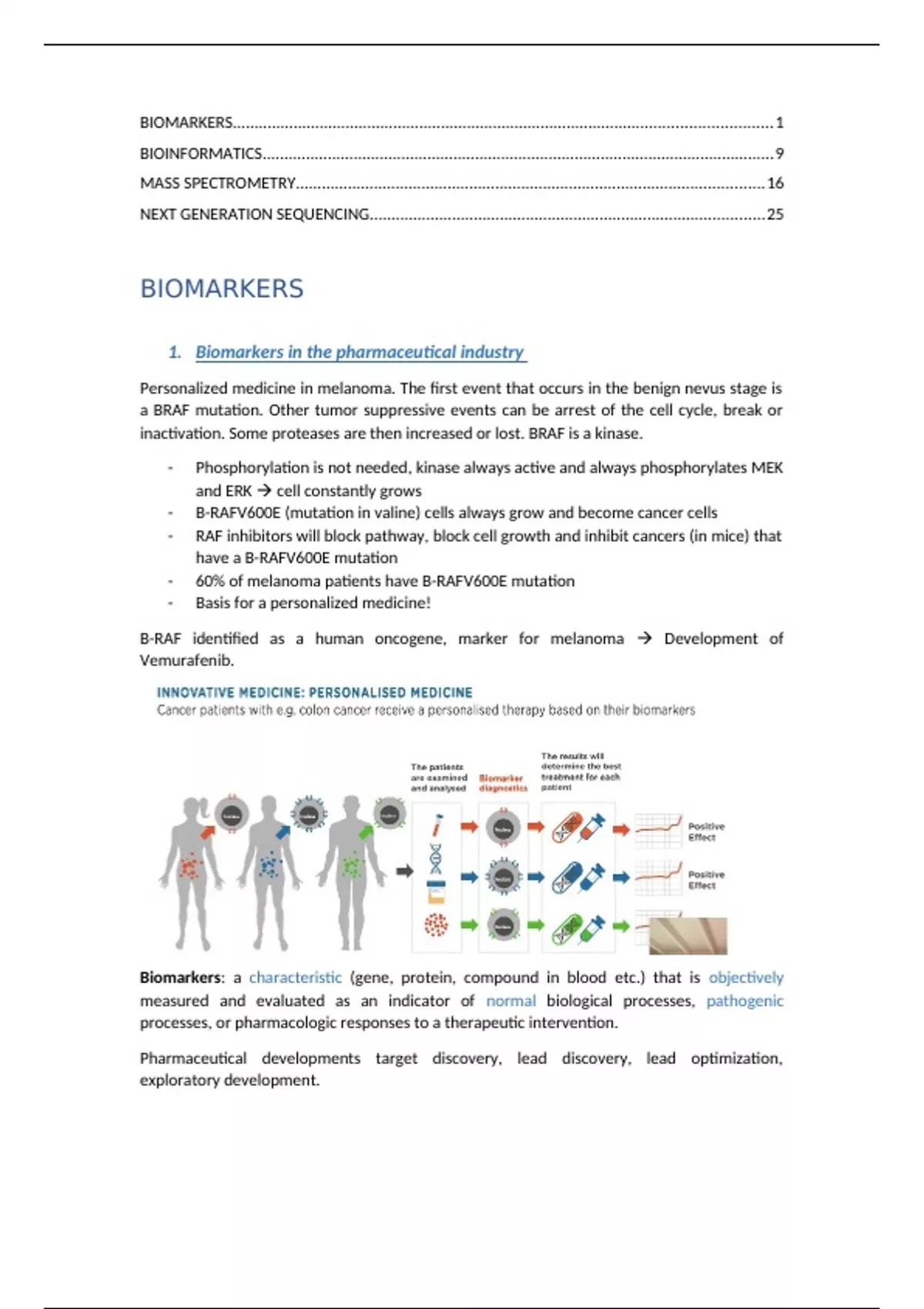 Biomarkers: a characteristic (gene, protein, compound in blood etc.) that is objectively