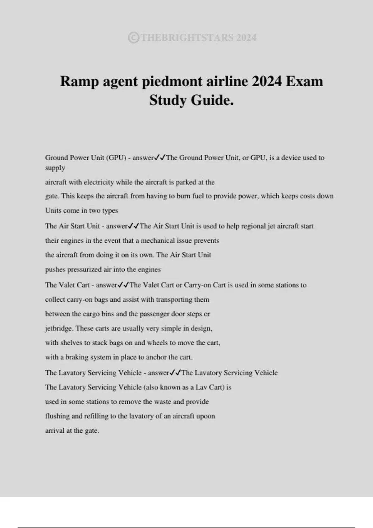 Ramp agent piedmont airline 2024 Exam