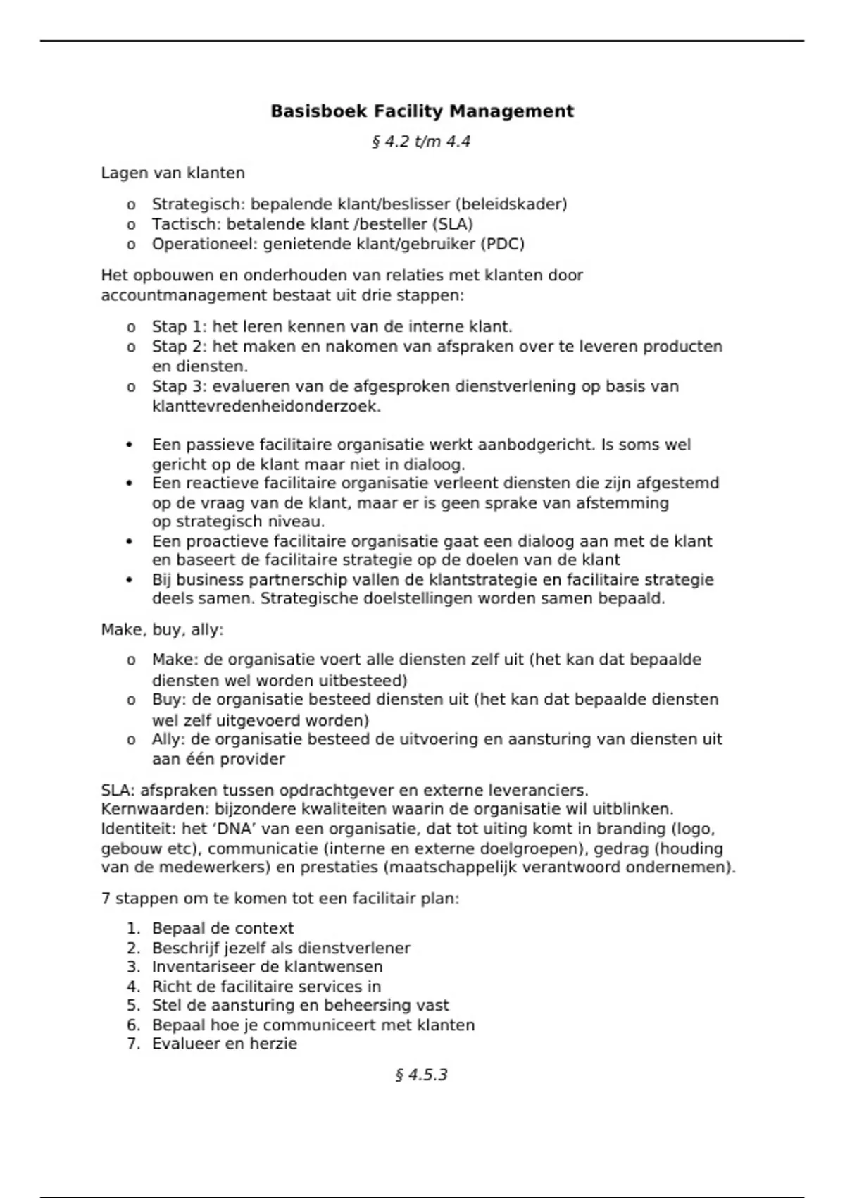 diensten worden vastgelegd in een SLA. Hiermee heeft de facility manager geen