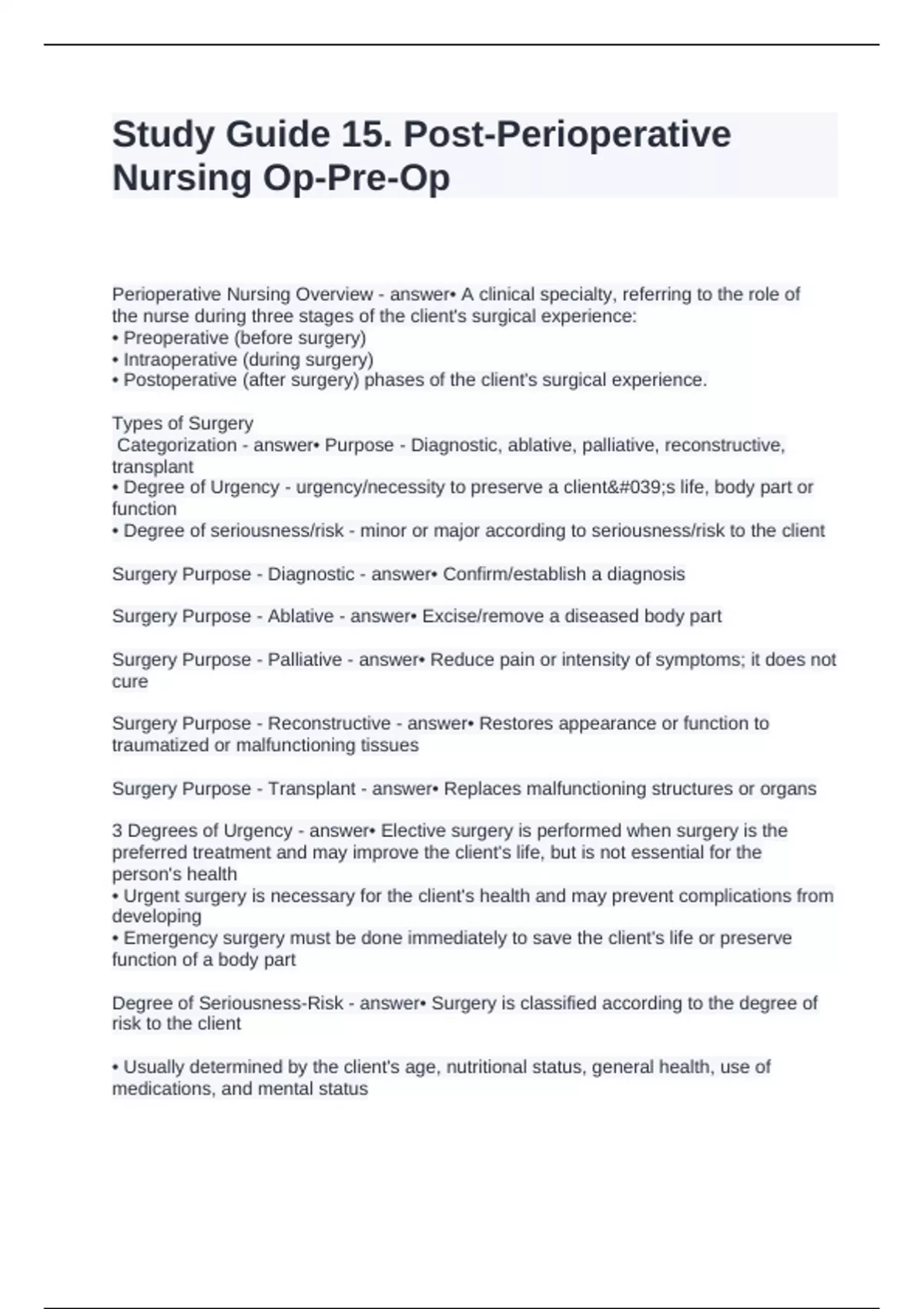 Preoperative Care Assessment - Physical - answer• Is brief but complete, and focuses