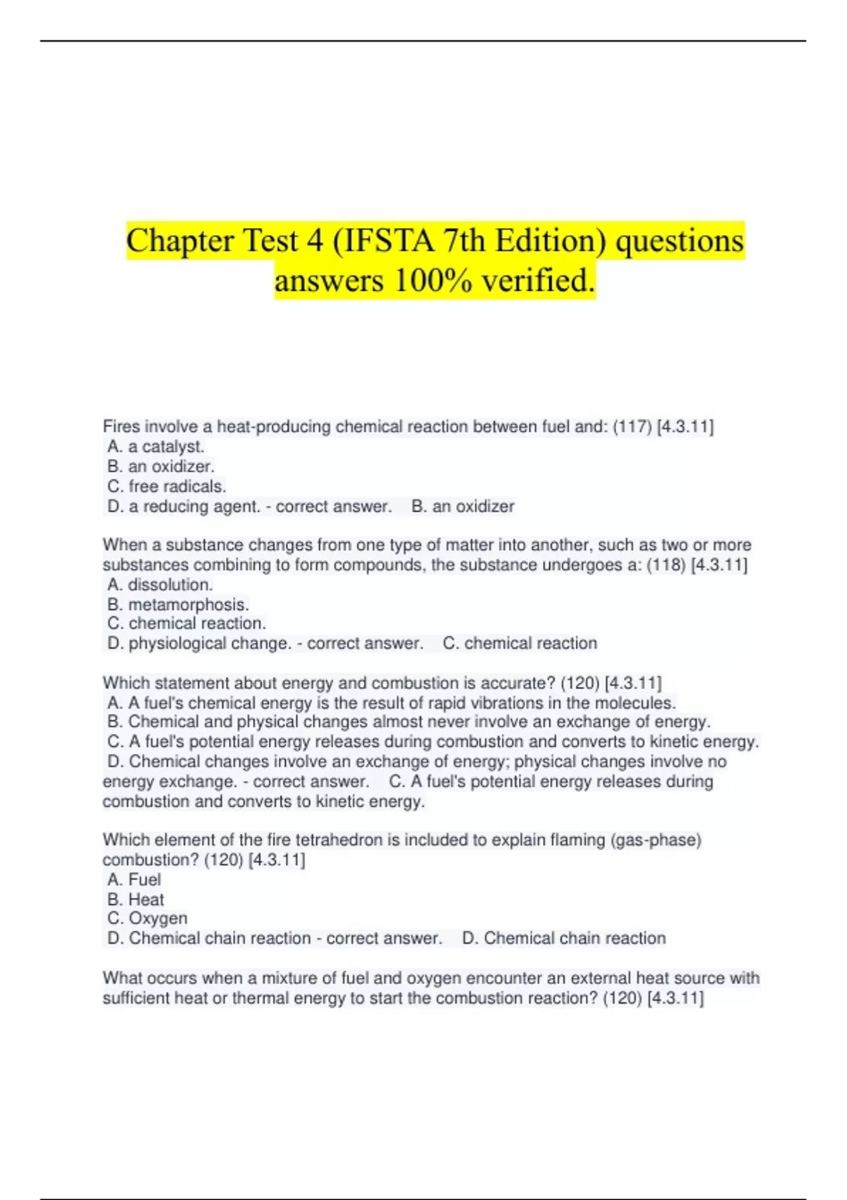Chapter Test 4 (IFSTA 7th Edition) questions answers 100% verified.