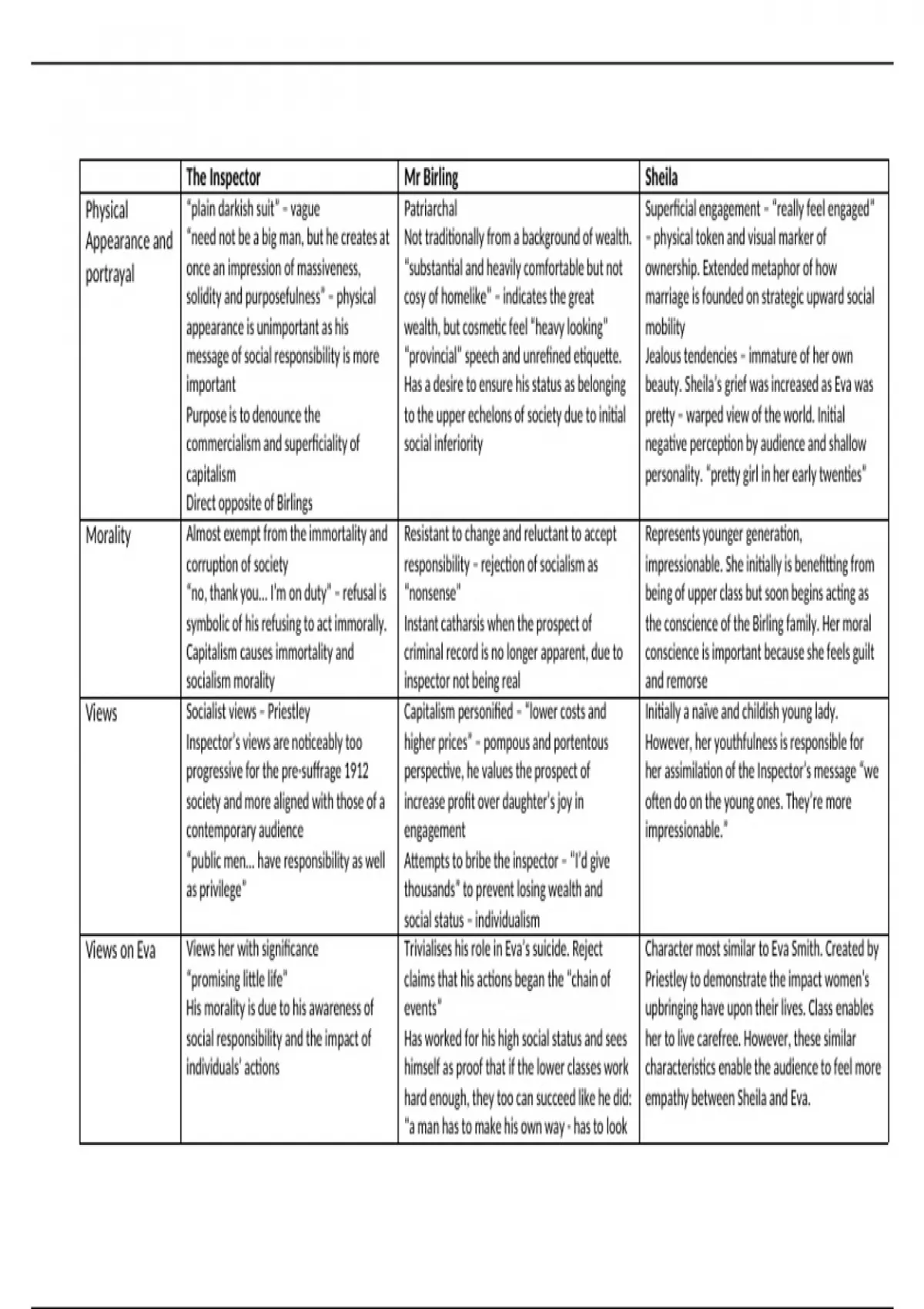 Views on Eva Views her with significance Trivialises his role in Eva’s suicide. Reject Character most similar to Eva Smith. Created by