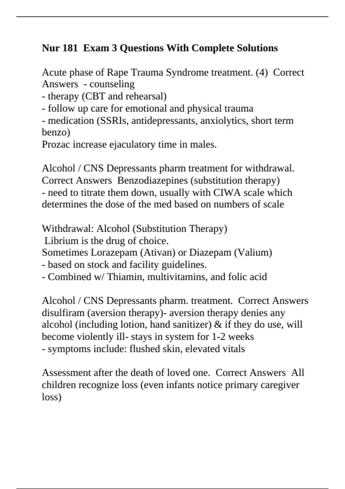 Alcohol / CNS Depressants pharm. treatment. Correct Answers