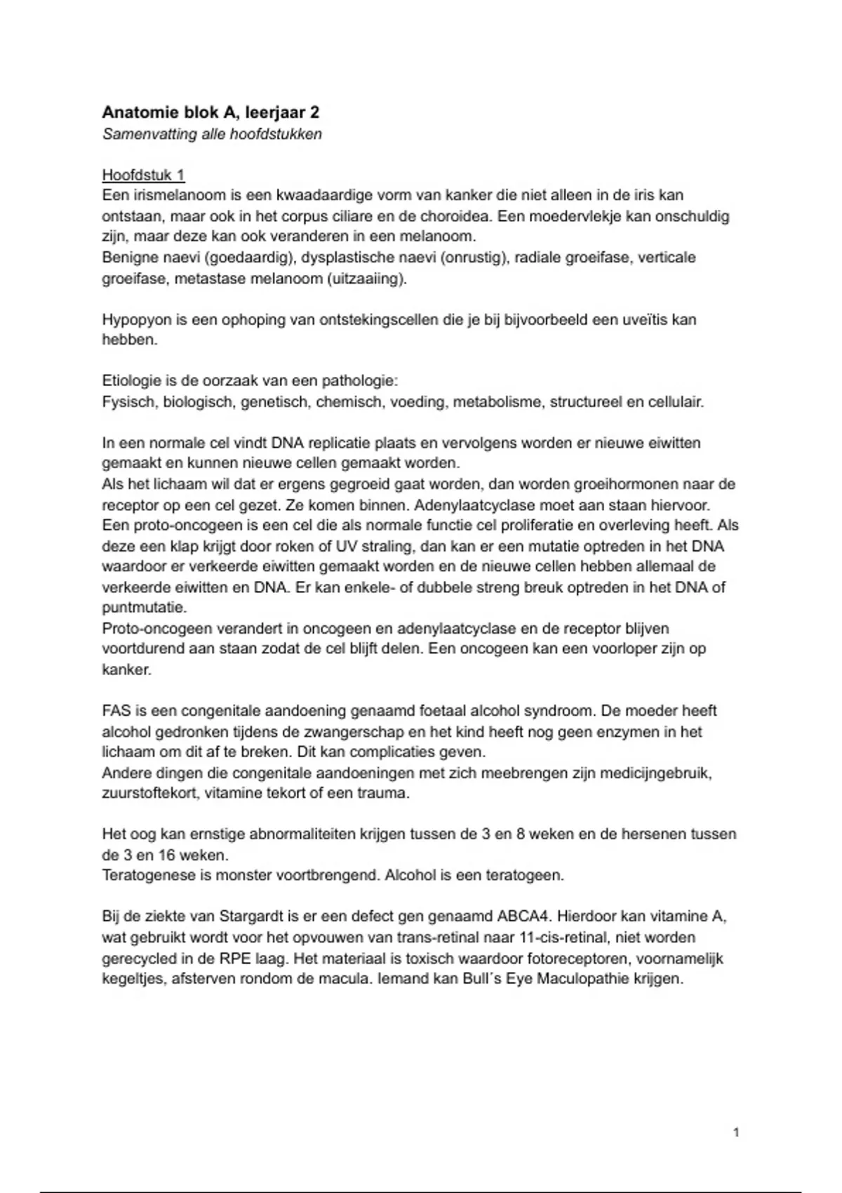 Complete samenvatting van het eerste blok van Anatomie en Fysiologie van de opleiding optometrie, tweedejaar aan de HU.