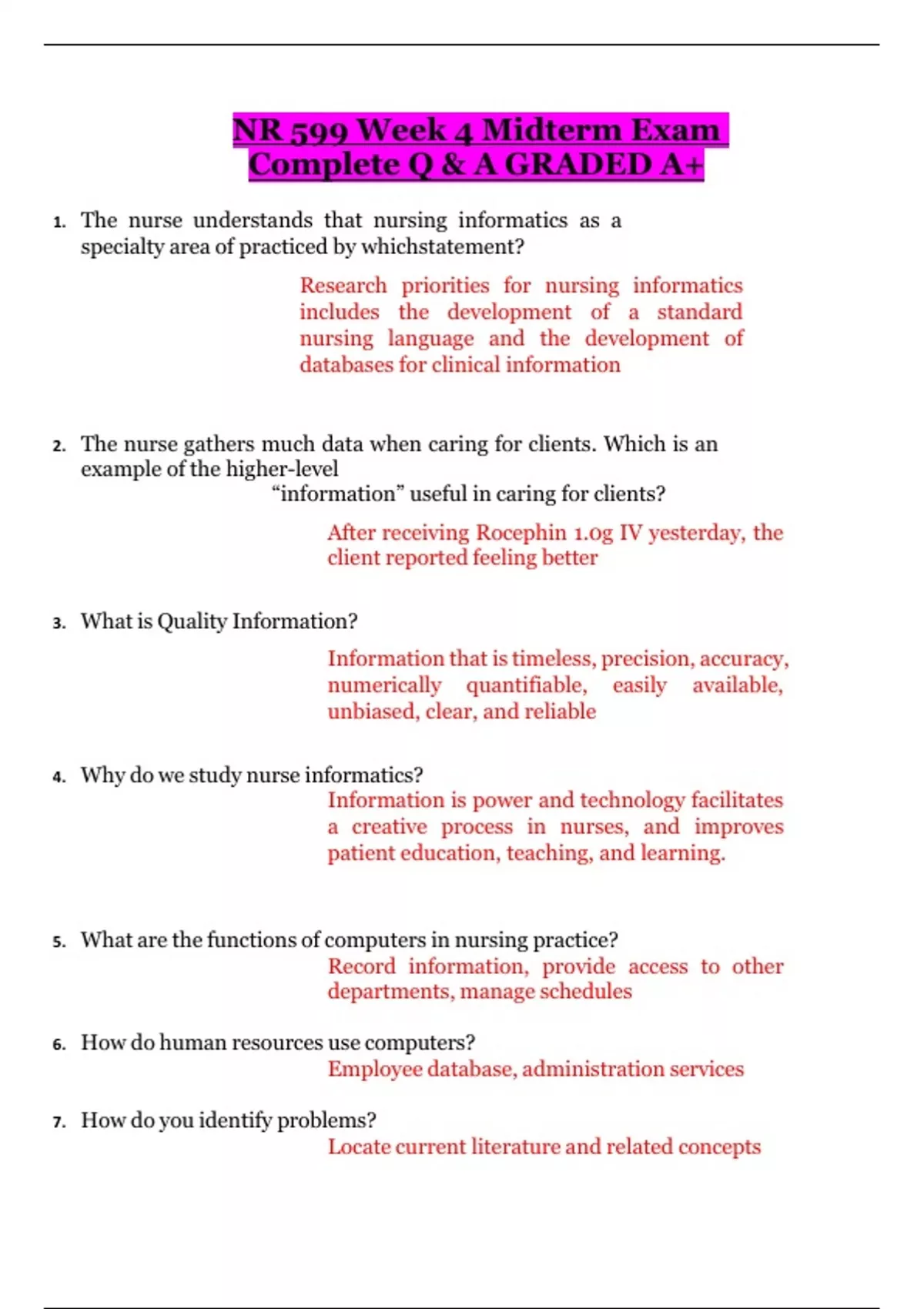 NR 599 Week 4 Midterm Exam Complete Q & A GRADED A+
