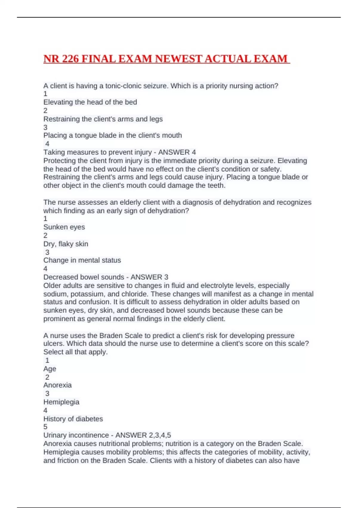 NR 226 FINAL EXAM NEWEST ACTUAL EXAM