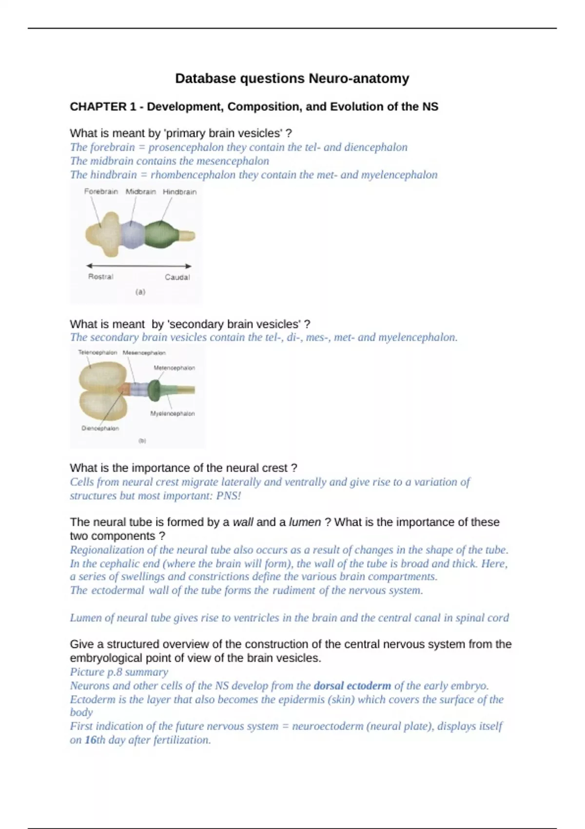 Database questions Neuro-anatomy