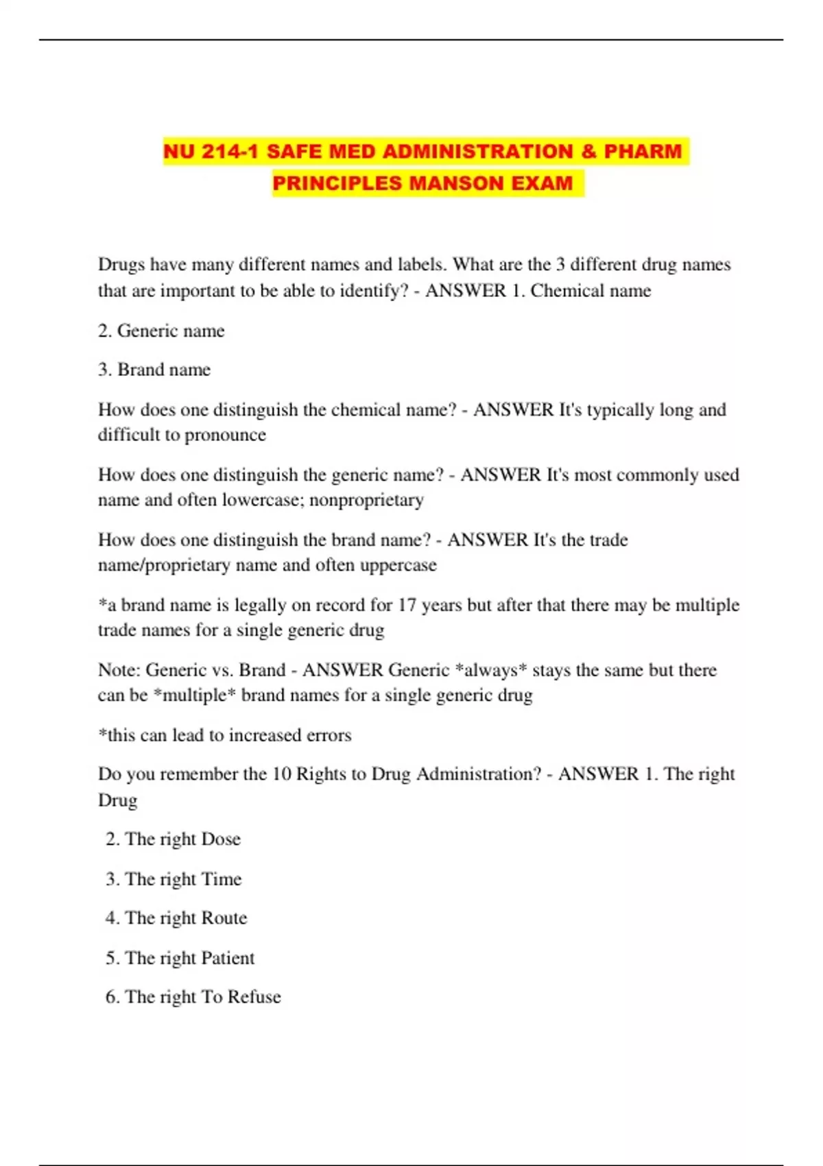 Do you remember the 10 Rights to Drug Administration? - ANSWER 1. The right