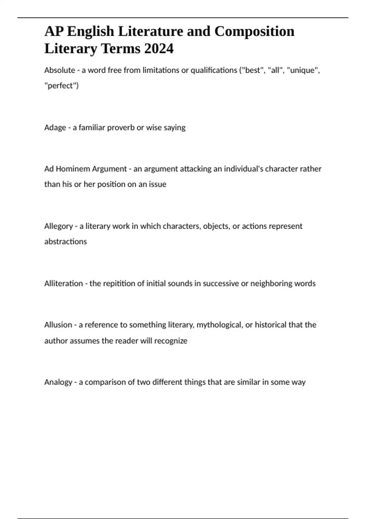 Literary Terms 2024
