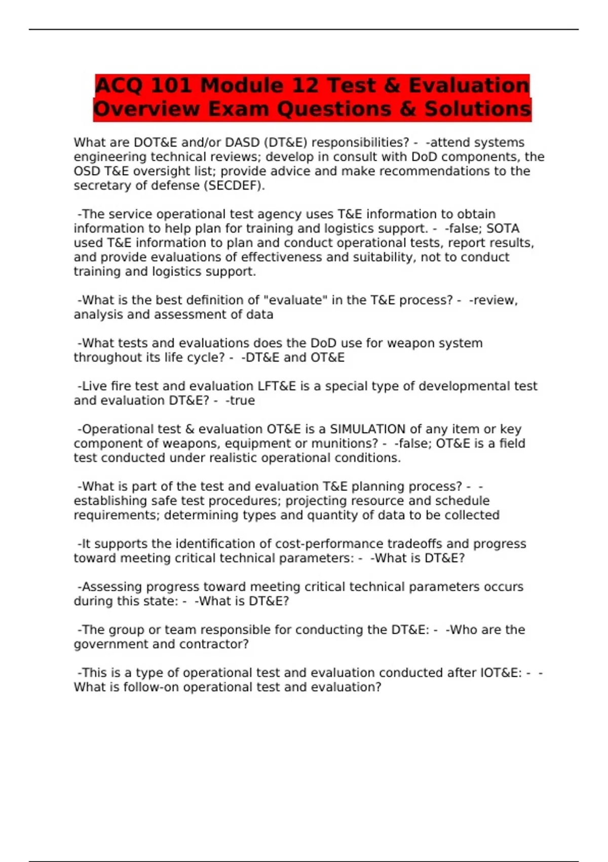ACQ 101 Module 12 Test & Evaluation