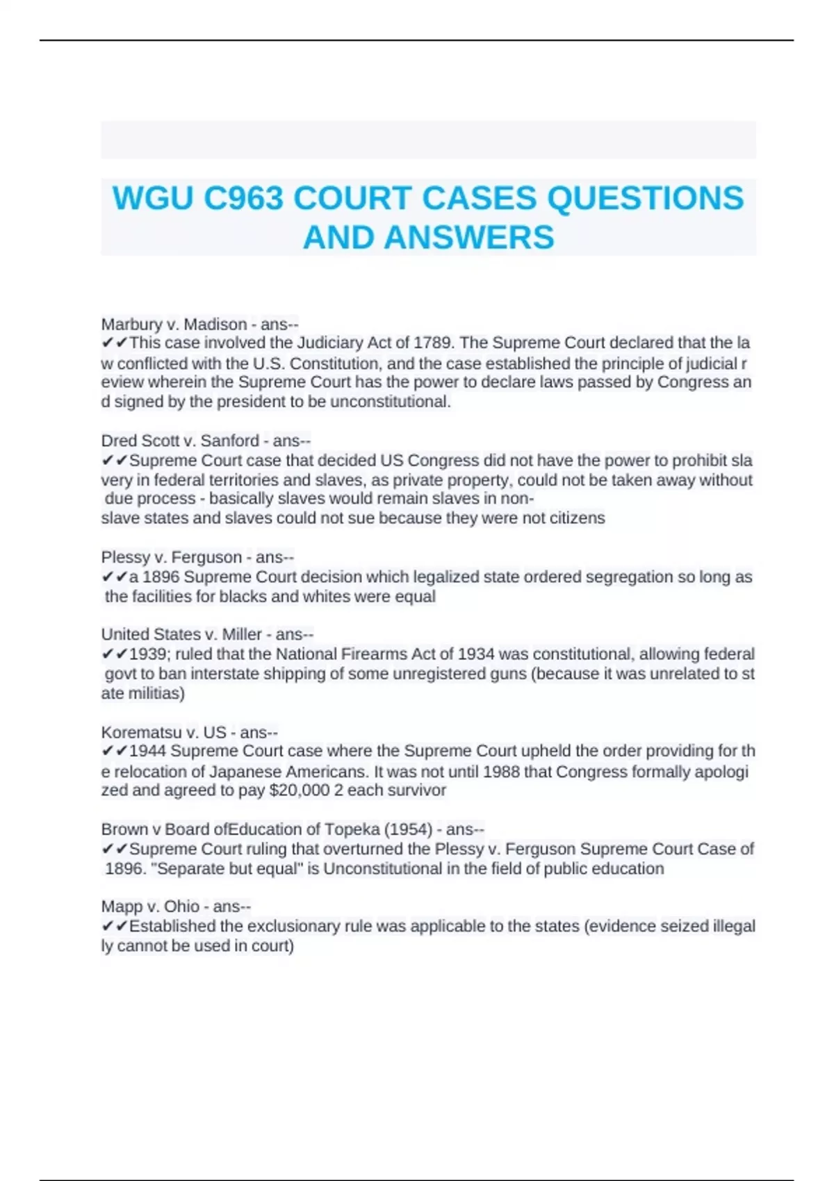 WGU C963 COURT CASES QUESTIONS AND ANSWERS