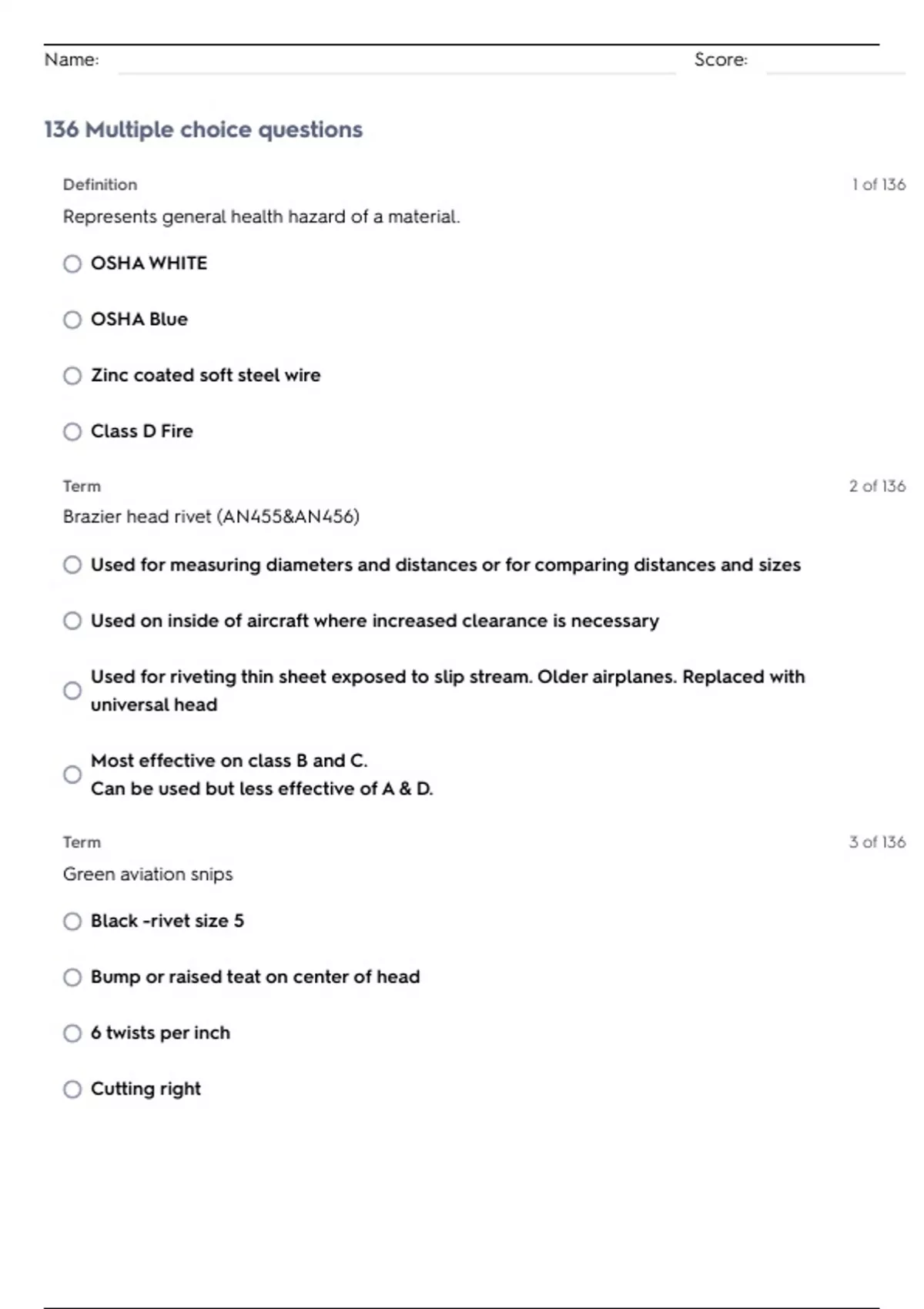 Name: Score: