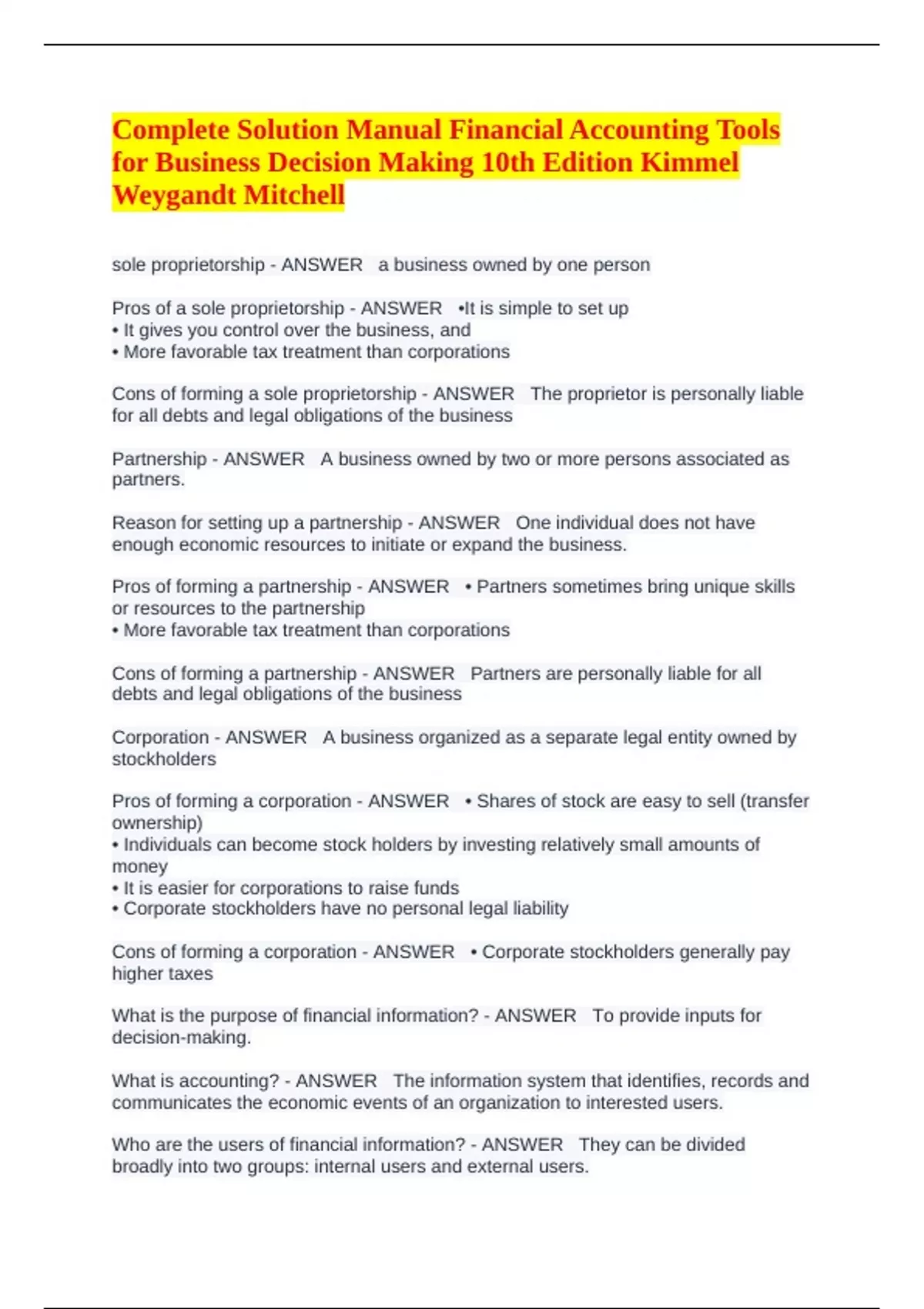 Pros of a sole proprietorship - ANSWER •It is simple to set up